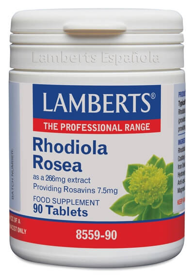 LAMBERTS Aportando 8 mg de Rosavinas BOTE PL - 90 - TABS - Embalaje: 12La Rhodiola Rosea es una de las 50 especies distintas de Rhodiola. Esta especie goza de un amplio empleo y reconocimiento, con un largo uso tradicional durante siglos. Rhodiola Rosea contiene una gran variedad de compuestos potencialmente activos, siendo los más conocidos las rosavinas. La Rhodiola Rosea de LAMBERTS® aporta un extracto de alta potencia, equivalente a 1200 mg de planta y con un nivel garantizado de 8 mg de rosavinas por tableta.