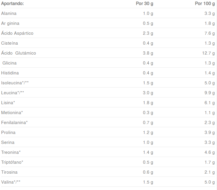 | Ácido Glutámico | 3.8 g | 12.7 g |